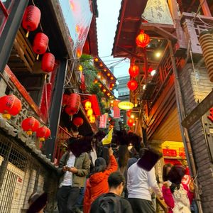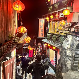 台北駅集合で約1時間のバスに横揺れで乗ったあと、かなりの好物がある階段を登ります。乗り物酔いをする人は酔い止めの対策を、脚力に自信がない人は、事前に体力をつけておくことを勧めます。私は中断で登るのを諦めましたが、それでも入ったお茶屋さんと日暮後の提灯の景色は素晴らしかったです。また、ガイドさんは微に入り細に入り丁寧な対応でした。アッピン(ガイドさんのニックネーム)最高!