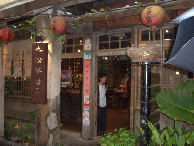 雨だったため、ガイドさんおすすめのお茶屋さん、映画「悲情城市」のロケで有名な、九份の街で老舗の茶芸館、「阿妹茶酒館」へ。