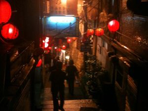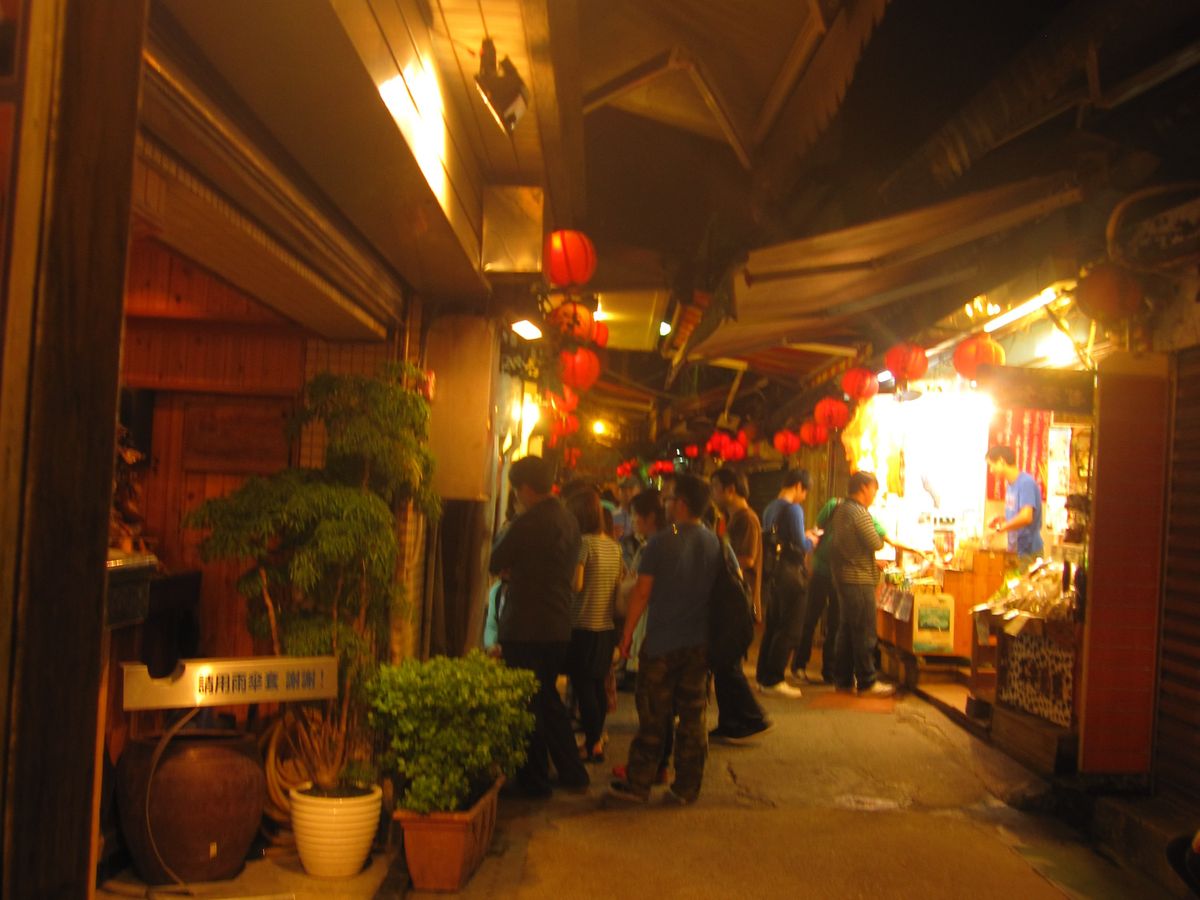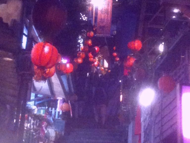 前日に昼の九分を散歩して次の日の夜、また行きました。あいにく雨でしたが観光客が少なく、ゆっくり散策しました。