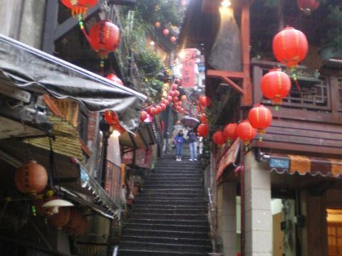 案内に書かれていたノスタルジックな雰囲気というのに惹かれて、夕方からのツアーに参加しました。現地着はまだ明るく、店屋もほとんど開いていてにぎやかでした。てっぺん近くの由緒あるお茶屋さんで、同行の方とガイドさんといっしょにお茶をいただきながら、台湾のお茶についてのいろいろなお話を伺いました。ゆっくり、のんびり、お茶の勉強もして、暗くなってちょうちんの明かりが雰囲気をかもし出すころ帰路に着きました。楽しい思い出のツアーになりました。