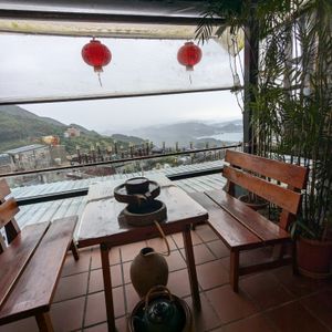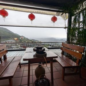 九份では阿妹茶棲にどうしても行きたかったのですが、ガイドの丁さんがコツ等色々と教えてくださり、奇跡的にとても眺めの良いテラス席に座ることができました!