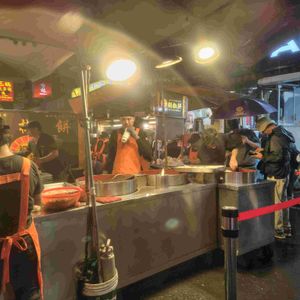 十份は強風と大雨で散々だったので、そのままホテルに帰りたいをドライバーに伝えましたが、十份が雨でも台北は降っていないことが多いと言われ、確かに夜市に着いた頃は殆ど止んでいましたので、一応饒河街夜市で有名な胡椒餅とネギ焼きとサツマイモ揚げ団子を食べました。どれも美味しかったです。