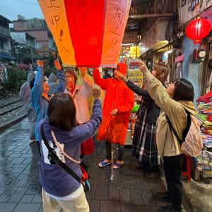 九份は古い町並みと飲食,買い物,十分では,ランタンに願い事を書いて,飛ばすことができて,大変思い出に残る体験でした.