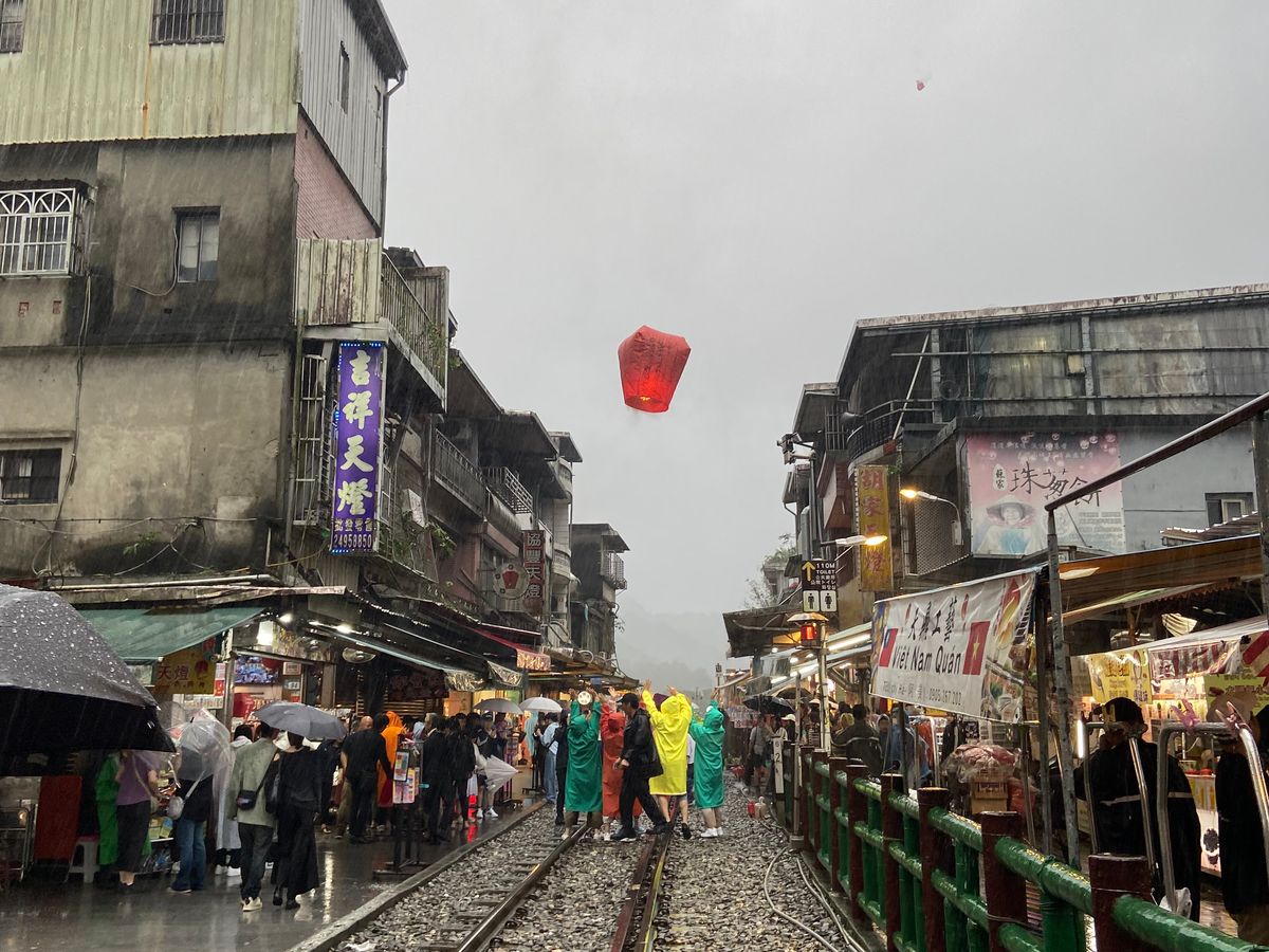 数ある九份十分ツアーの中でローカル線に乗りたくてこのツアーを選びました。当日はツアー催行が危ぶまれる程の大雨。台北駅でレインコートを買う人も。ガイドさんから天燈あげができないかもと言われましたが現地で店内で願い事を書いてささっと線路に出てあげることができました。参加者の皆さんずぶ濡れでしたが大満足でした。平渓線が雨で運行されなくて残念でした。気になっていたツアーの食事、出来立てが運ばれて炒め物も揚げ物もスープもおこわも冷えた身体に美味しかったです。九份ではガイドさん手作りの地図はガイドブックに載っていない道も店もあり散策に役立ちました。