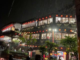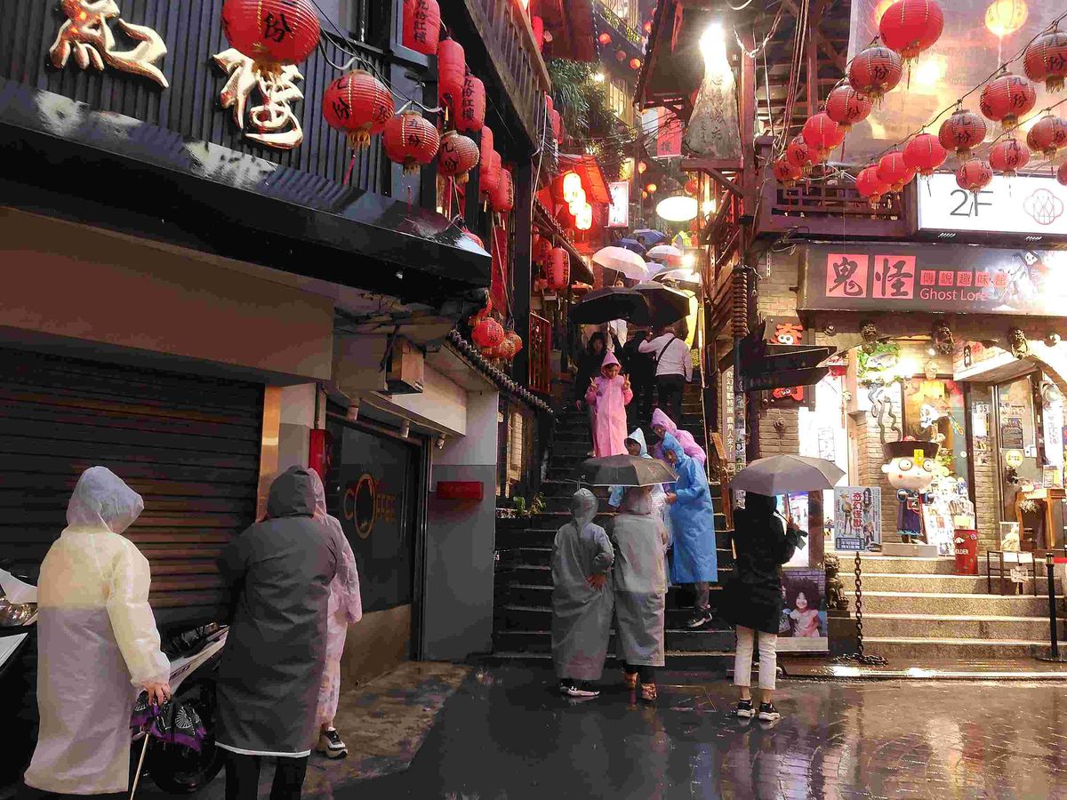 雨が降っていると特に坂が滑るので靴や服装には気をつけた方がいいです。台北市内が晴れてても九フンは雨もよくあるらしいので雨対策は必要だと思います。