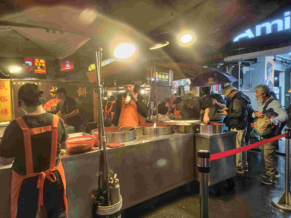 十份は強風と大雨で散々だったので、そのままホテルに帰りたいをドライバーに伝えましたが、十份が雨でも台北は降っていないことが多いと言われ、確かに夜市に着いた頃は殆ど止んでいましたので、一応饒河街夜市で有名な胡椒餅とネギ焼きとサツマイモ揚げ団子を食べました。どれも美味しかったです。