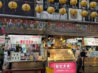 夜市は基隆の夜市で2人だけのツアーでしたので、リンさんが案内とともにルーロー飯の安くておいしい店で注文をサポートしてくれました。豆花のお店、1口ソーセージなども楽しめました。夜市はコンパクトですが、店の番号もあり迷うことなく楽しめました(夜市初心者にピッタリな感じと思います)
