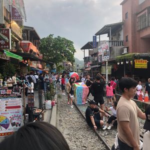 けれども、日没の時間と仇分の商店街エリア?のお店の閉店時間を考慮すると、天燈上げをしてから行く方が効率的だということで、明るいうちに十分へ。暗い中のイメージを持っていたのでそこだけ残念。