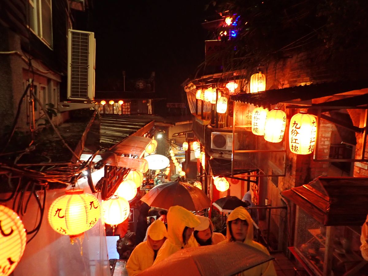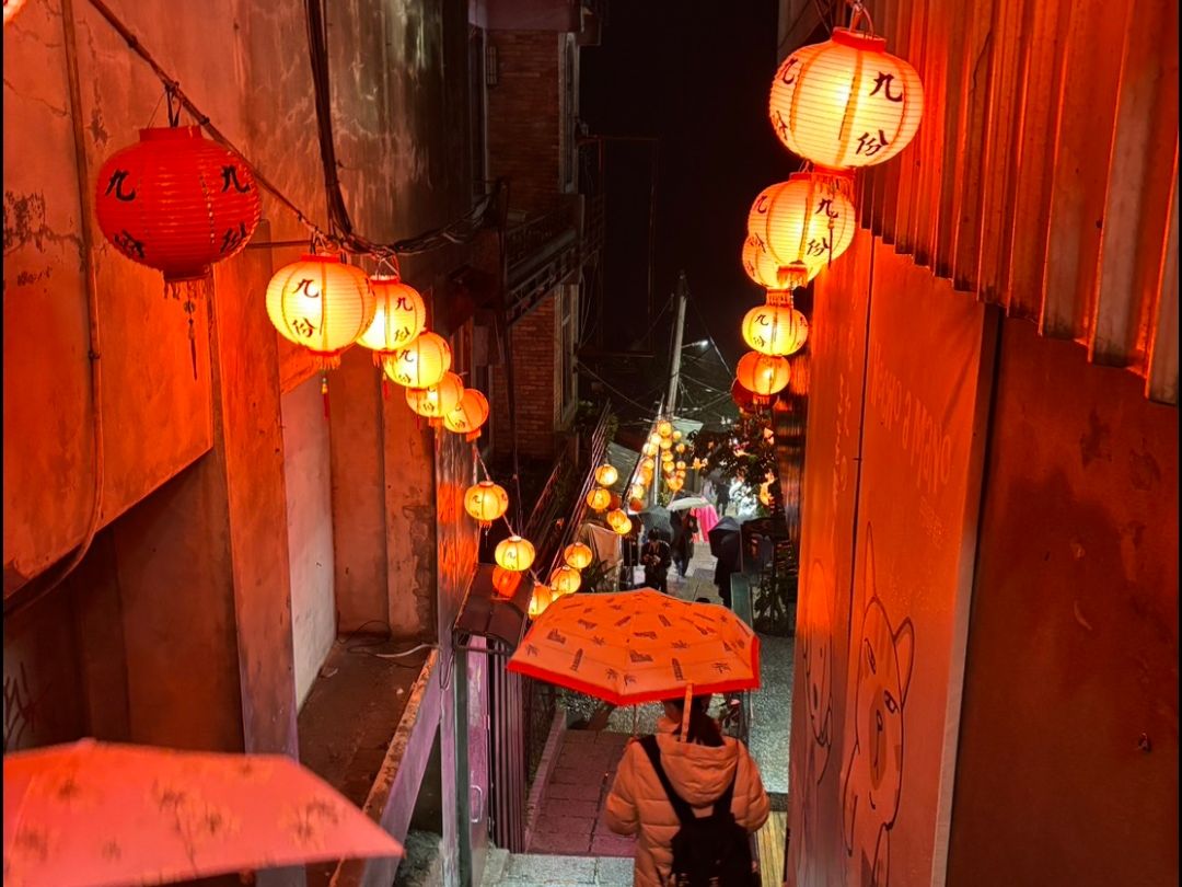 九份は寒いのと雨の確率が高いので、防寒と撥水の両方を兼ね備えた上着があるといいです。人が多く、狭い階段で傘をさすのは大変です。