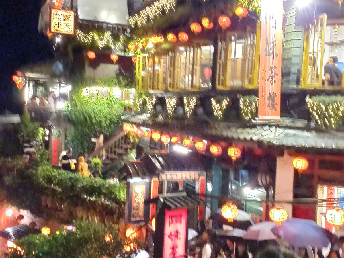 その後九份に到着するも大雨で、階段からの滝のような水の流れに靴は水没、傘だけでは間に合わず100均のポンチョが役に立ちました。