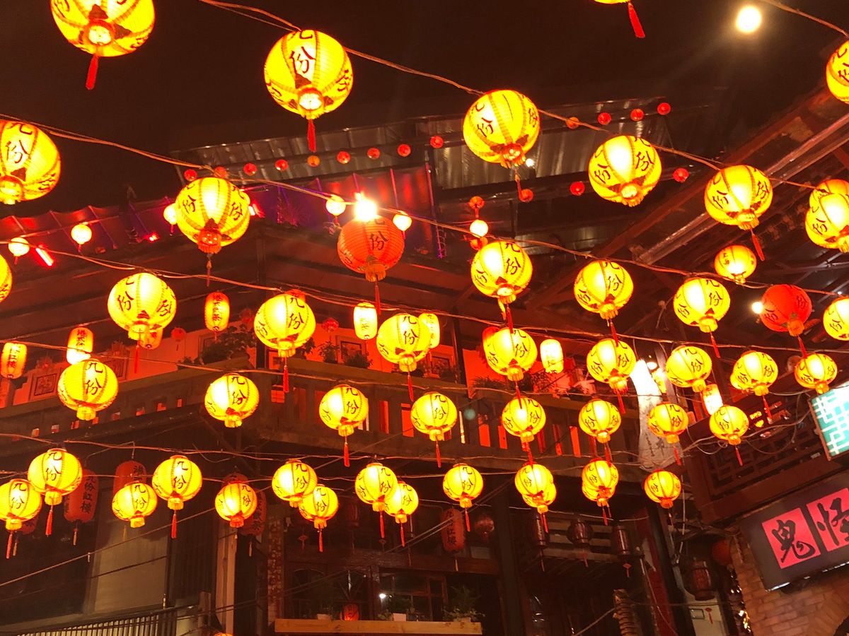 次にまた階段を登り100%パイナップルケーキの維格餅家へ。試食をしたら甘味少く美味しかったので、お土産としてゲット。色々お店を覗いている内に日も落ちて提灯ライトアップ。写真に収め3時間の滞在終了。