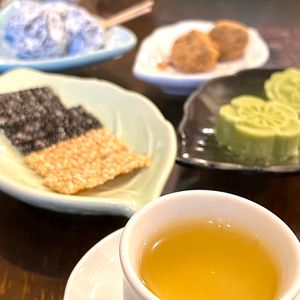 九份はちょうど阿妹茶楼の点灯時間だったので、人がものすごく、ゆっくりお茶できなかったのですが、まだ烏龍茶を買ってないと話すと、おすすめのお店に連れてってくれました。事前に連絡しておいていただいたようで、スムーズに案内され、美味しいお茶の飲み比べをして、いい時間になりました。