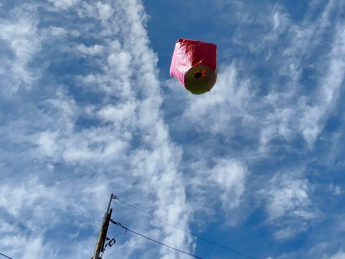 願い後が書かれた天燈が、自分の手を離れ青空へと上がっていく様子はとても爽快で、スカッとしました。