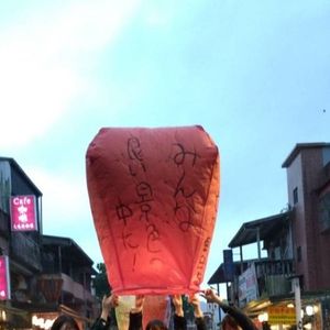 十分では希望の夜の天燈上げを体験できお土産までいただいて