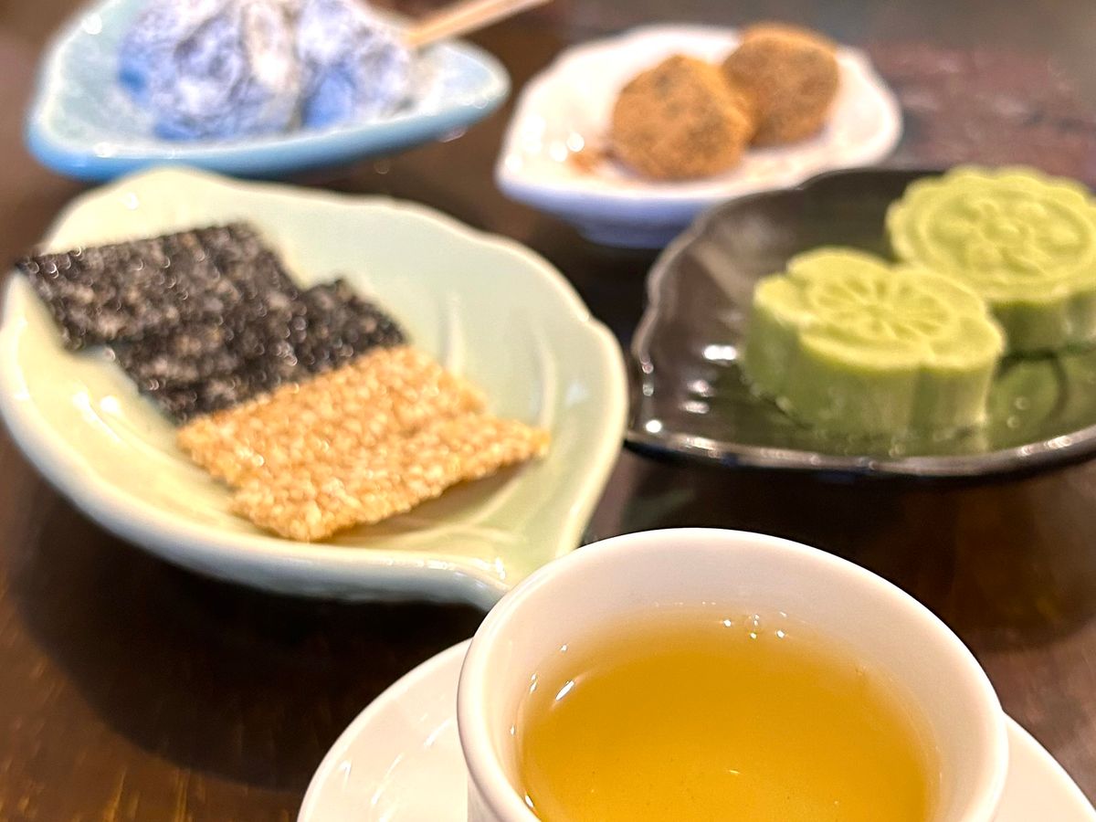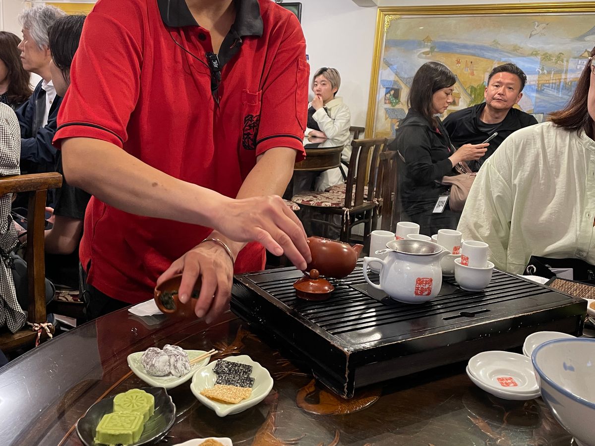 九份はちょうど阿妹茶楼の点灯時間だったので、人がものすごく、ゆっくりお茶できなかったのですが、まだ烏龍茶を買ってないと話すと、おすすめのお店に連れてってくれました。事前に連絡しておいていただいたようで、スムーズに案内され、美味しいお茶の飲み比べをして、いい時間になりました。