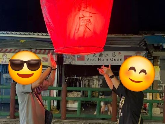 続いて、十分の街で、ランタン上げ体験をしました。私は250元のランタン(4面に願いを書くことができる)を選びました。