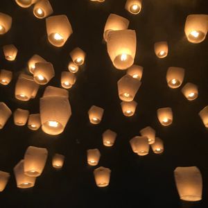 ランタンに願いを書き合図を待ちます。そして夜空に一斉に放たれる150個のランタン。幻想的でした。