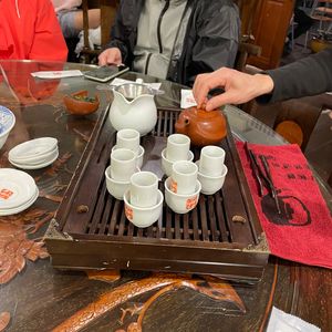夕暮れになり提灯にあかりが灯ると人が増えて来たのでお茶屋さんに入店しました。空いてたのですぐ案内されました。そこでもゆっくり休憩できて、お店を出る時には入店待ちのすごい行列ができていました。