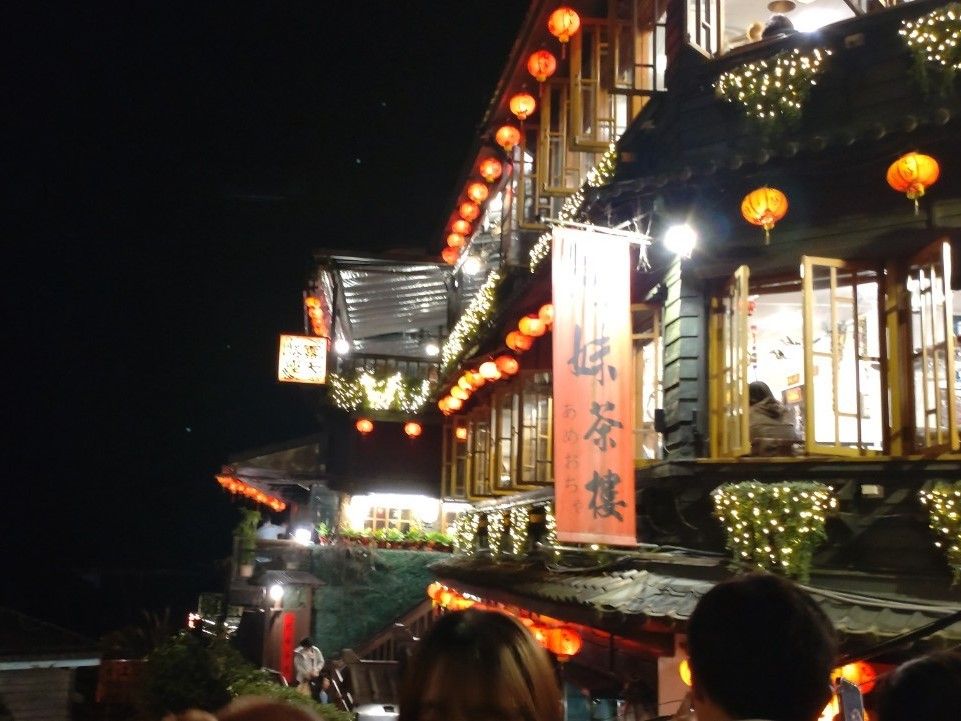 その後お土産物屋をゆっくり回って戻ってきましたが、帰りは大変な人混みで、階段が怖かったです(ガイドさんはこれでも、今日は少ない方ですと言っていましたが...)。その頃は日が暮れてライトアップされて、これぞ九份という感じでした。ちょうど夕暮れの時間帯のツアーなのでベストではないでしょうか。