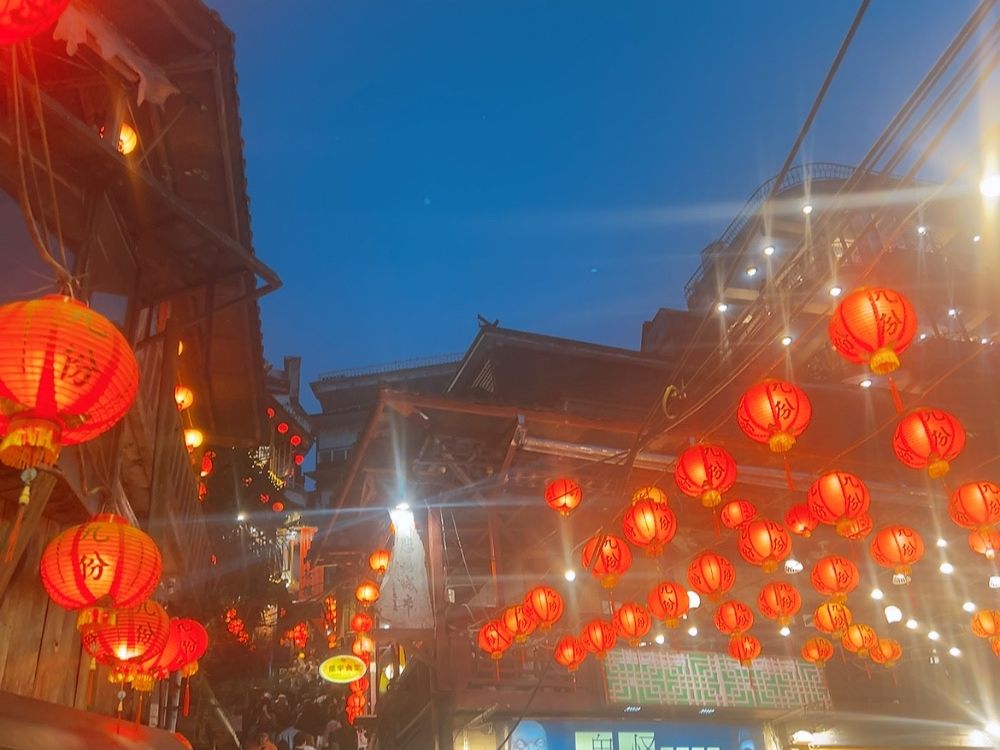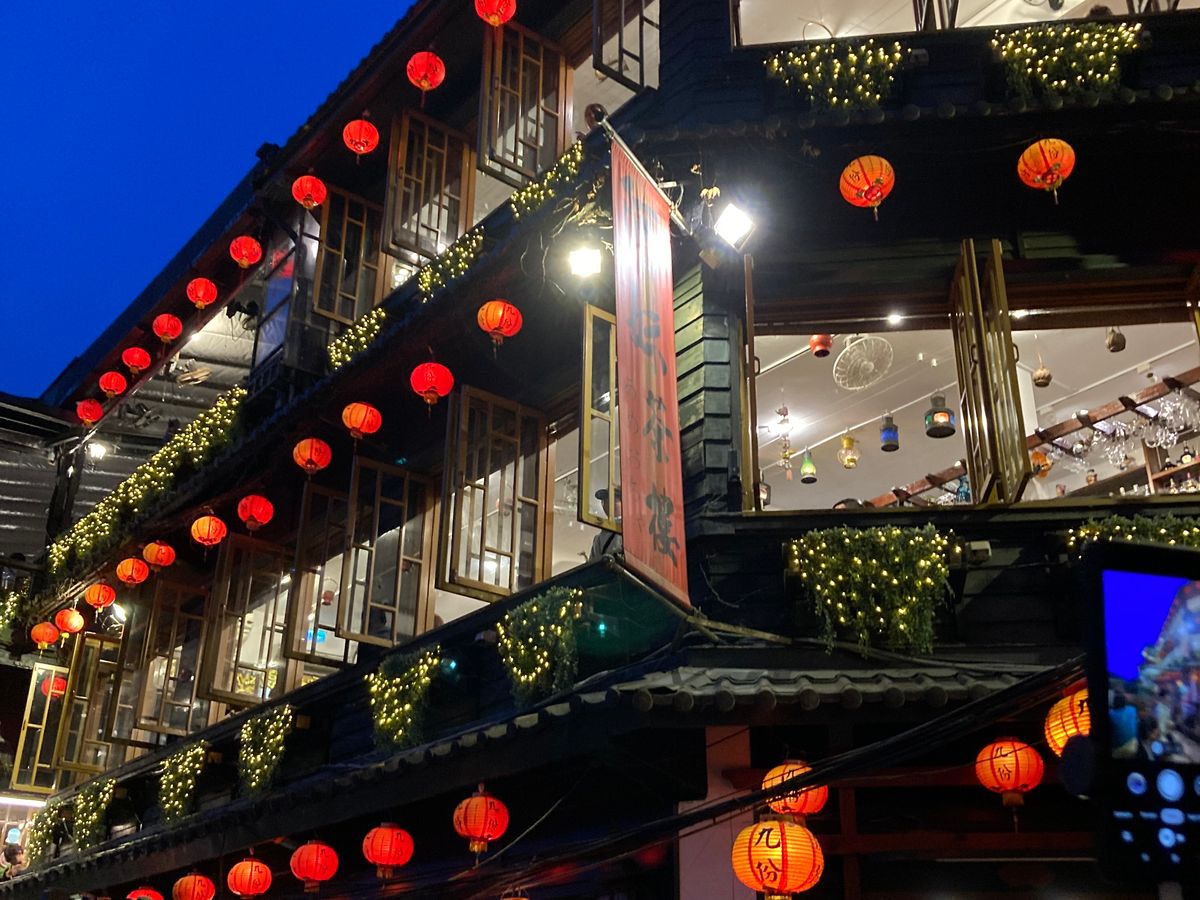 雨がぽつぽつ顔にあたりながらも無事に天燈上げ(思っていた何倍もわくわくするイベントです!)を終え、夜の九份へ。