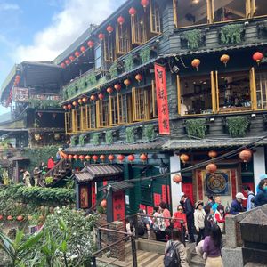 九份での昼食もとても美味しく、自由散策の時間も十分ありました。簡易地図も用意してくれおすすめスポットをバス内で教えてくれました。自由散策にて有名な阿妹茶楼でお茶をする方は、ガイドさんが中まで案内してオーダーもフォローしてくれました。私は阿妹茶楼でお茶した後、基山街という商店街を一通り歩き、軽九份は階段多いので子連れの方はベビーカーなしの抱っこ紐orヒップシートがお勧めです。九份は、夜景が見れる時間帯のツアーと迷いましたが、明るい時間でも風情があり大満足な1日でした。子供にも優しく配慮下さりました。十分も九份も、ツアーで行くのがだんぜんおすすめです。
