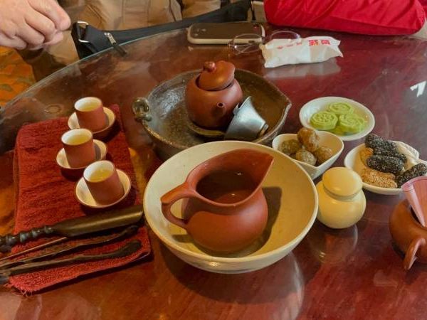 まず最初に定番のお茶。これは希望者だけ参加できるので、散策だけしたい方はそれもOK。お菓子もセットになっていて、お茶の飲み方もお店の方が日本語で説明してくれたのでわかりやすかった。