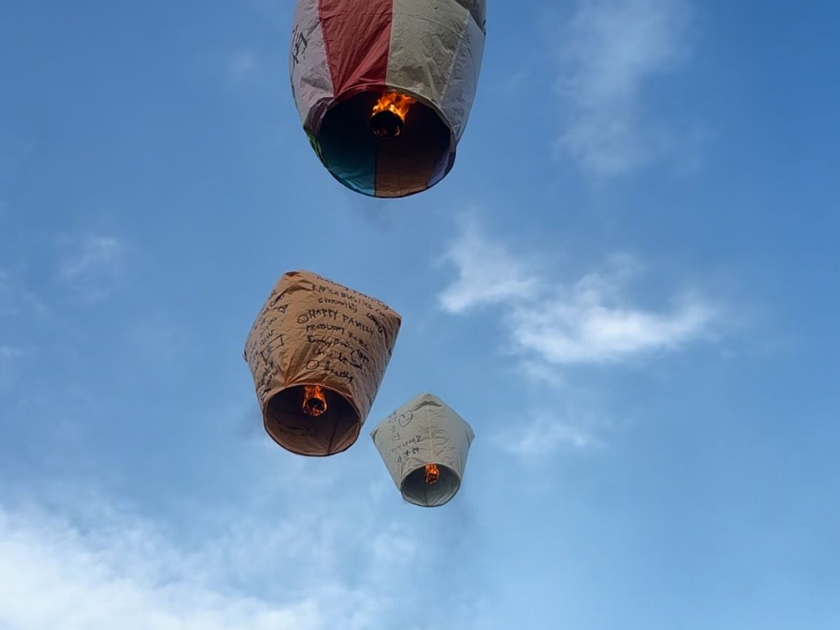 天燈上げがとっても楽しかったです。やる前に、思いを大事にして体験してください、とガイドのミケさんがおっしゃられていたので、思いを込めて書くことができました。一生の記念です。
