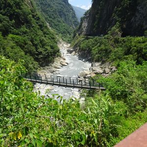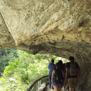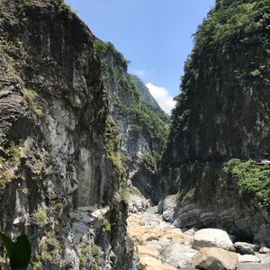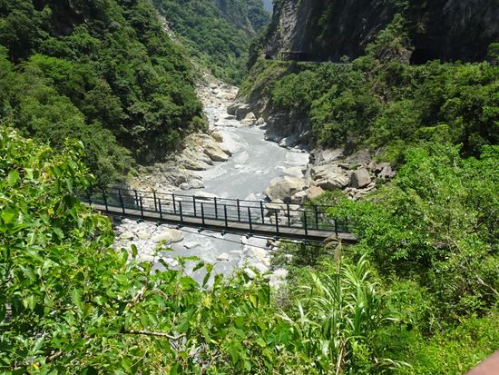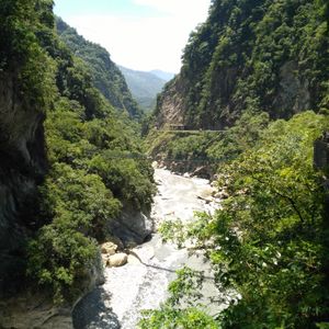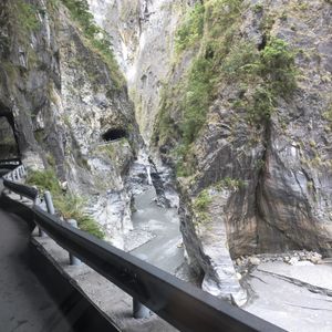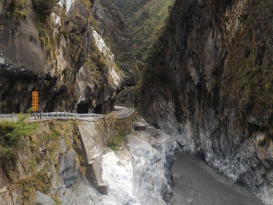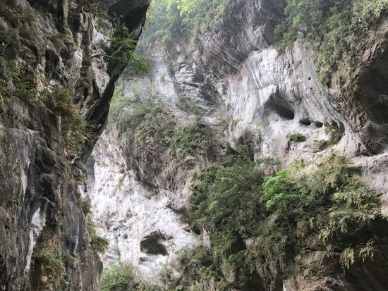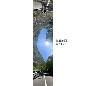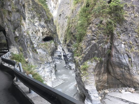 大理石の岩盤をくり抜いた素掘りのトンネルと眼下に広がる渓流、そして、険しい山々からなる景色は最高でした。そして、空を見上げるとそこには台湾の形が!?いつもと違う台湾を満喫できました。