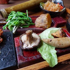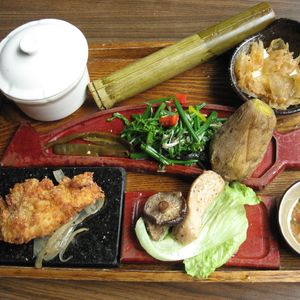 3日目のフリータイムを太魯閣渓谷の観光ツアーにしました。ガイドさんがベテランの男性で行きの列車の中でいろいろと車窓から見える景色を事細かに説明していただき、2時間30分という時間もあっといい間で終点の花蓮へ到着しました。参加者は私たち夫婦と台湾へ単身赴任できて見えた男性とご一緒でした。ガイドさんを含めて4人での移動だったので、とてもいいペースで見学ができてよかったです。昼食は源住民の郷土料理をおいしくいただきました。(写真)移動時間が往復で5時間列車に乗っているため、大人数ですと大変かなと思いました。なかなかいくことができないところですが、ぜひ一度1日たっぷりとかけて大自然を満喫してください。