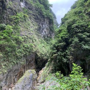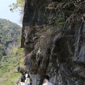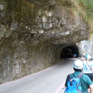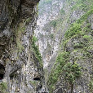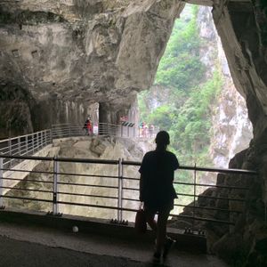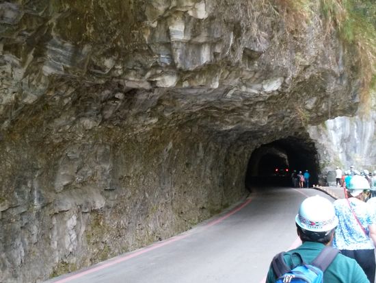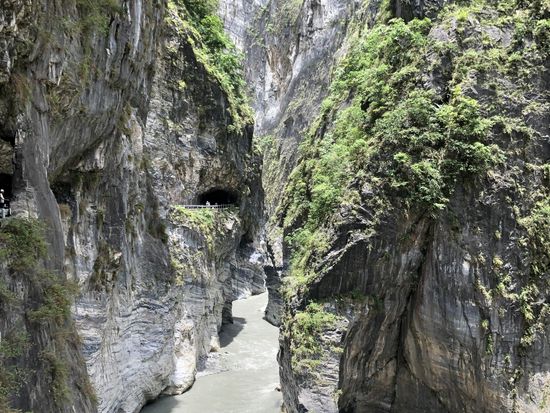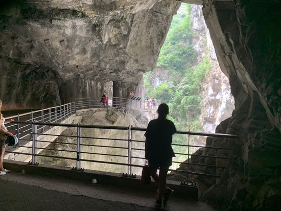 そのあと、長春祠→燕子口へ。燕子口は暗いトンネルを歩きながら岩窓から見下ろせる渓谷と見上げる断崖が絶景。岩の縞縞がきれいでした。