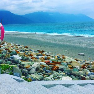七星譚は青色で綺麗でした浜辺も海側は丸石で少し離れると砂浜になっていました。波もほどほどでのんびりできそう 波でも高波や小波でどこまで水が来るのかもだいぶ違うし面白い。滞在時間は大理石と同じく30分です。