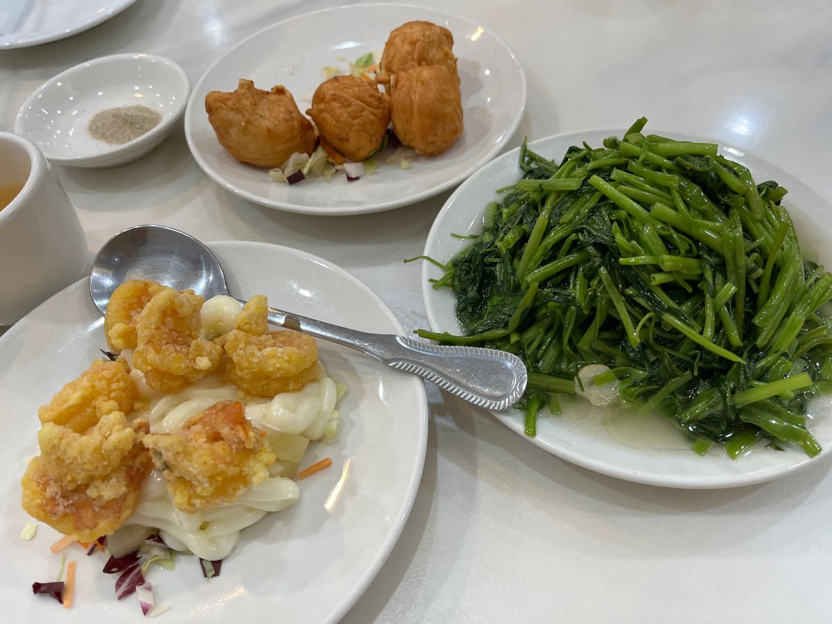 席に着くと、次々に料理が運ばれてきます。やはり小籠包は別格の美味しさでした。8種の小籠包食べ比べコースは、少人数でもたくさんの種類を楽しめてよかったです。ほかの空心菜炒め、サンラータン、パイコーチャーハンも上品な味付けでとても美味しかったです。