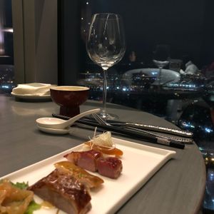 MRT板橋から徒歩10分程でmegacityへ到着します。1Fで予約名を伝えるとエレベーターに上がれるのでそこで48Fへ。入り口で名前を伝えると案内していただきました。料理の出るタイミングはちょうどよく、タワーの反対側は結婚式の宴会場もあってか上品な味でした。ロブスターはあまり食べる機会がないですがとても大ぶりでした。量はそんなに多くないので大食いの方には物足りないかも。最後にデザートや、記念撮影もしていただきいい思い出が出来ました。有難うございました♪