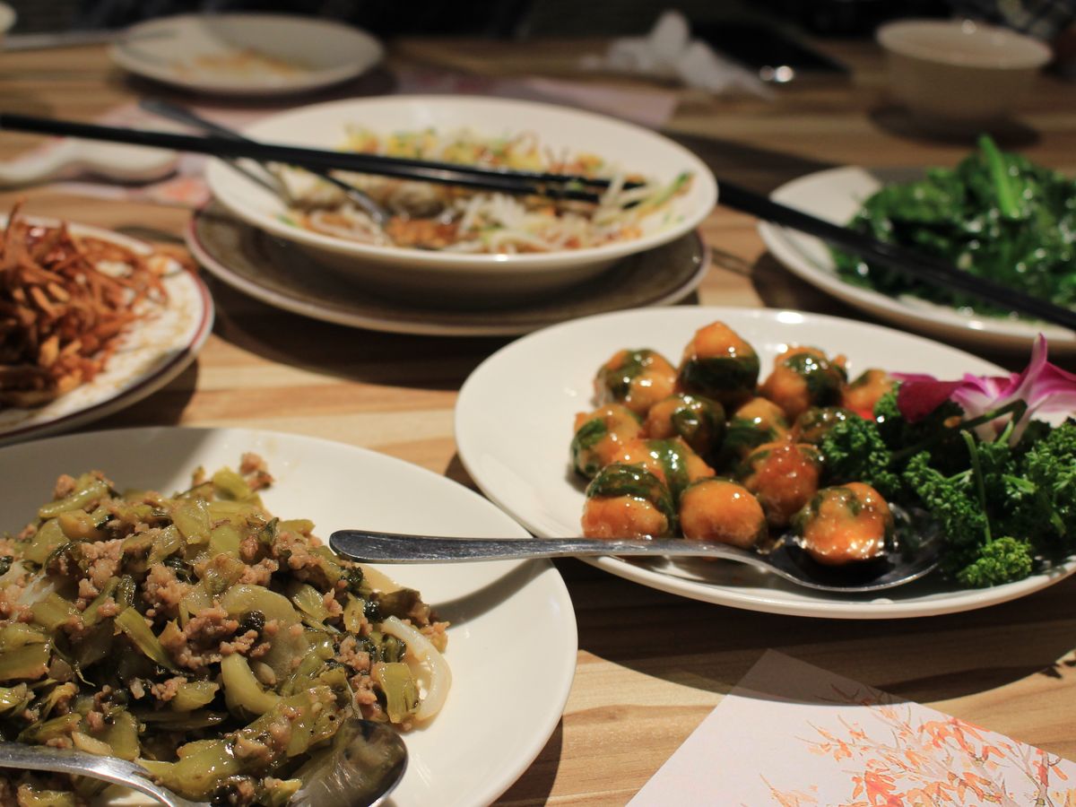 どの料理もとても美味しく感動したが、特に名物の龍井鮮蝦仁(川エビの龍井茶葉炒め)、杭州東坡肉(杭州風豚肉の角煮、白ご飯付き)が印象に残る味だった。
