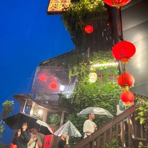 その後、土砂降りで雷が鳴る中、九份でお茶