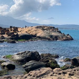 行き先も「あれもこれも」と欲張ったのに、「まだ時間ありますから~」と終始笑顔で連れて行って下さり、時には降りて解説して下さり、加えて「こういうところもどうですか」とお勧め下さったところも素敵な景色で、写真を撮りまくりました。また、お勧め下さった基隆魚港の屋台の海鮮焼きも、九扮のパンチ―載せアイスクリームもいずれも絶品でした。