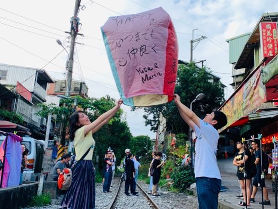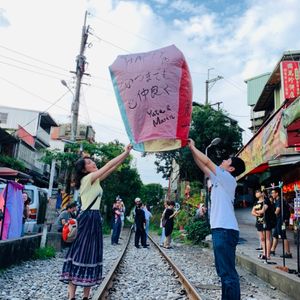 初め、自分達で電車&バスに乗って十分&九份に行こうと考えてました。結果このツアーに申し込んで本当に良かったと思っています。まず、ホテルまで送迎をしてくれるのでとても楽です。1番良かったのは十分での天燈上げです。運転手さんが上手な日本語でガイドしてくれ、スムーズに天燈上げが出来ました。自分達だけでは出来ない写真撮影も天燈に願いを書く所から飛ばす所までいろんなポーズで撮影してくれます。写真と動画を組み合わせ音楽付きの素敵な動画作品を作ってもらえ、思い出深いものになりました。雨の多い九份では突然の雨で困っていらした人が多いなか、傘を貸してもらえたくさんのお店巡りも充分楽しむことが出来ました。以前昼間の九份は経験済みでしたが、やっぱり夜、提灯に明かりがともる時間帯に行くとより幻想的でした。