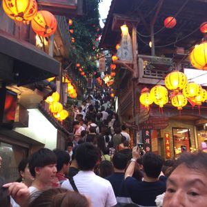 九份観光自体は、前半、店が両側にひしめく細い路地を買い物しながら200m程歩いて、後半は幻想的な景色を楽しみつつ階段を下るというルートが鉄板コースらしいですが、後半の下り階段は高齢の母親にはギリギリでした。足はガクガクだったけど、楽しめたようで良かったです。よい旅行になりました。