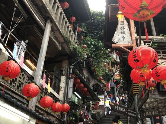 九份は噂通り混雑していましたが、チャーターの車だから、ということで上のセブンイレブン近くまで送ってもらい、街を見ながらゆっくり下ることに。