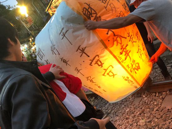 十分のランタン上げのお店が19時で閉まってしまうとのことで、先に向かいました。