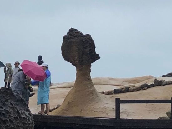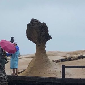野柳地質公園では小雨が降っており、1人1つカッパを頂きました。風が強かった為、持参した傘では不便だったと思いますのでとても助かりました。現地で入場料1人80元を支払い、入り口までドライバーさんに案内して頂き、別れました。時間は専用車ですので、特に決められませんでしたが、"時間はいっぱいある、1時間半でも大丈夫!"とのことでしたので1時間半を目安にしました。結局、ゆっくり写真を撮りながらまわるには丁度良い時間でした。