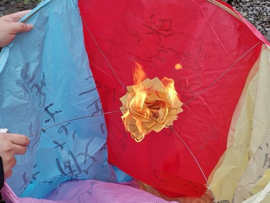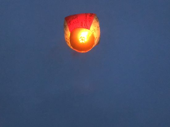 カウントダウンしてランタンから手を離すとスルスル上がっていきました。