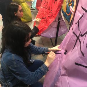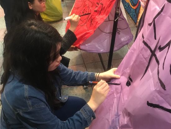 小雨が降ったり止んだりしていましたが、ランタンに筆で願い事を書くのはお店の前の軒下なので安心安心。