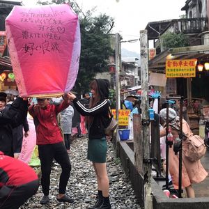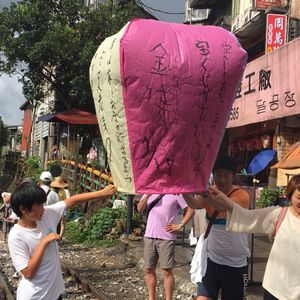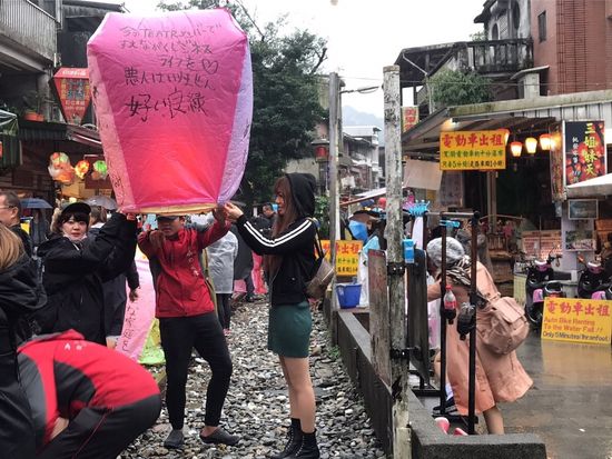 女性の方でしたが、とても気さくで気遣いのある優しい方でした。14時スタートで先に十扮に行き天燈上げをして約1時間程度滞在、次に九扮に行きましたが2か所とも雨で、九扮に着いた頃にはどしゃ降りの雨でした。