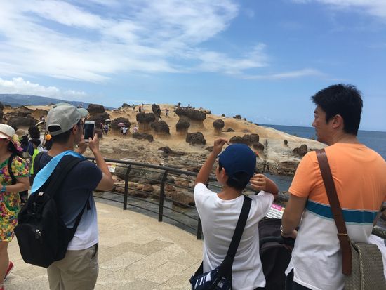 台北市内のホテルから野柳へ、見たことも無いような波の浸食でできた岩がみられます。小さなお姫様が横を向いたように見える岩、女王様のような岩、松茸?舞茸?様々な岩たちが迎えてくれました。