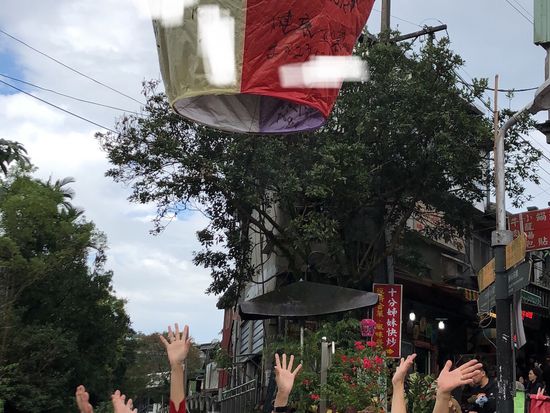 すっかり元気が回復したところで、十分瀑布までのハイキングと点燈上げ。全員初めての点燈上げでしたが、筆で願いごとを書きながら大盛り上がり。とてもいい思い出になりました。点燈上げには陳さんもご一緒し、写真も撮ってくださりました。