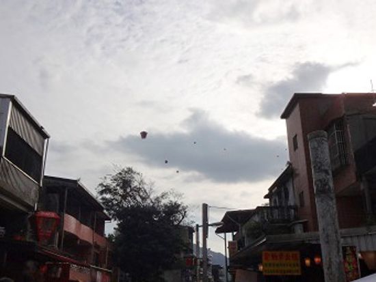 先に十份で天燈上げ、7人で4色2つの天燈を上げました。写真もたくさん撮ってくれて料金も表示通り。