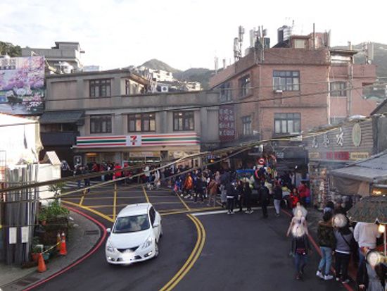 結局、九分は激雨で杖歩行の母親を連れて歩くのはムリで、でもガイドさんがせめて駐車場の前の露店まで行きましょう。と、言ってずぶ濡れになりながらも芋餅を食べる店まで連れてくれました。心が折れそうな横なぐりの雨も思い出です。ガイドさんが母親のために親切でした。結局、台北市内も雨でよいちも行けず、母親がずぶ濡れなのでホテルに戻る事になり3時間ちょっとでガイドさんのツアーが終わりました。