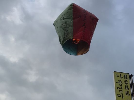 今回、7時間以上のチャーターで天燈をプレゼントという企画でしたので、天燈屋さんを選ぶストレスもなく、お店の方に江さんが説明してくれていましたので、とても楽しく天燈上げを楽しめました。