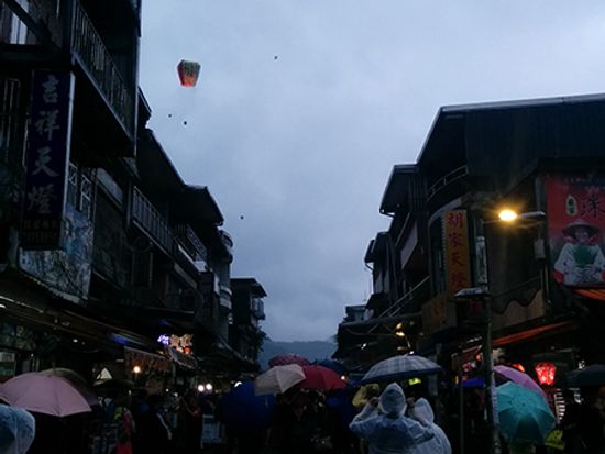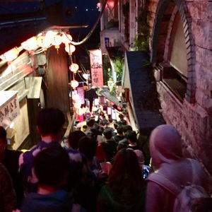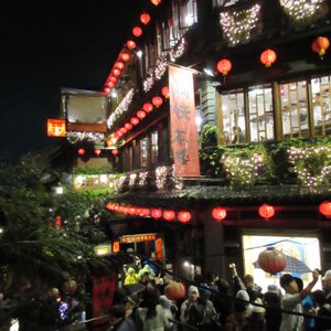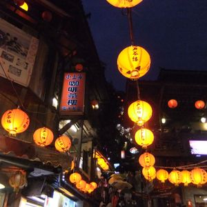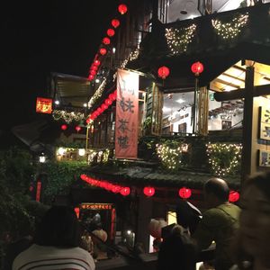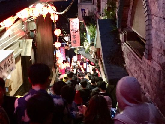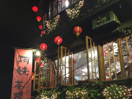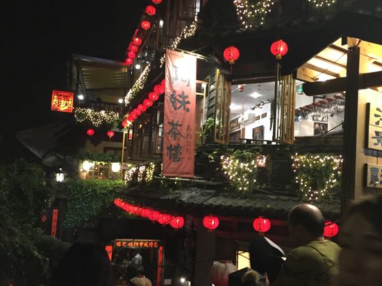 平日の3時30分に台北市内を出て、九份に4時30分頃着きました。混んでいるとは聞いていましたが確かに食べ物系のお店が軒を連ねている路地はすごく混んでいました。でもところどころで見えた海の眺めは、思いのほか素敵でした。混雑を避けて入った九份茶坊は内装の雰囲気がよく、お茶もとても美味しかったです。梅のお茶受けも美味しく、疲れが取れました。